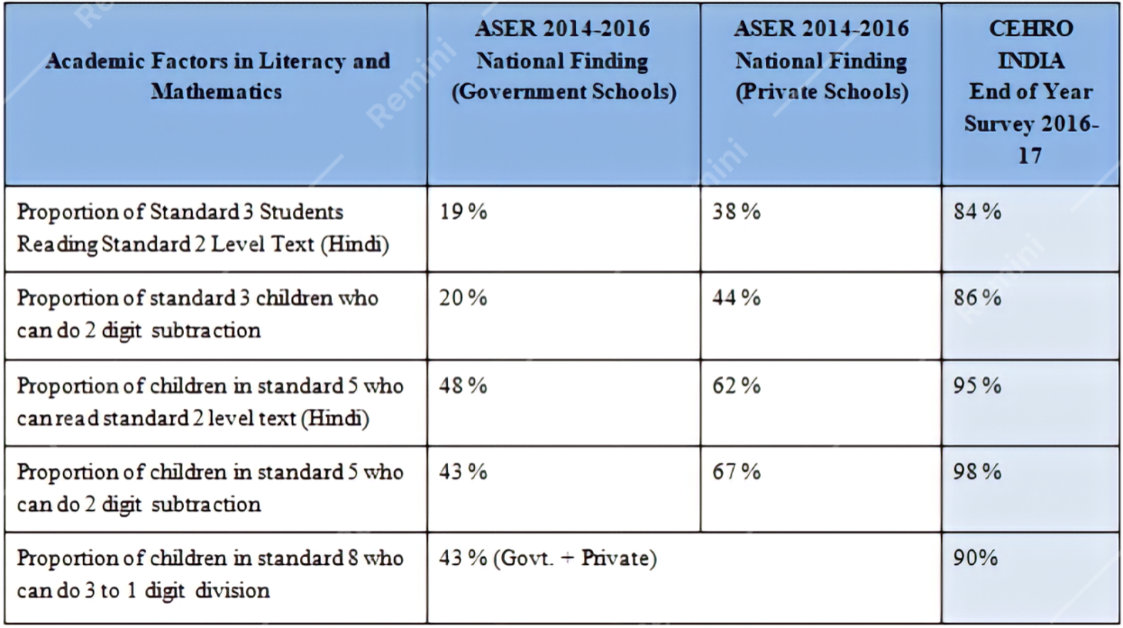 By The Padho-Padhao Initiative, we try to bridge the gap between what a kid knows what s/he should know as per his/her age. The Literacy and Numeracy emerged as focus areas where the struggle of students is tremendous, combining it with other socio-economic variables can lead to a disastrous consequence. We support students by running after school classes in Hindi, English and Mathematics, our methods are child centric, activity based and put in effect after good amount of research from our team. Hence our students learn quickly and are able to come to the grade level in 2-3 years of support. The results of the students who have been supported by The Padho-Padhao Initiative at the end of second year of support.