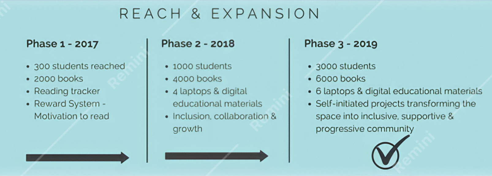 We have built an organic environment in which children are trained to select books as per their interest, and handle library records by themselves with little or no supervision. Currently, on an average, 235 books per month are being taken home by children apart from readings happening within the library. There are 2 elementary students who have read more than hundred books.